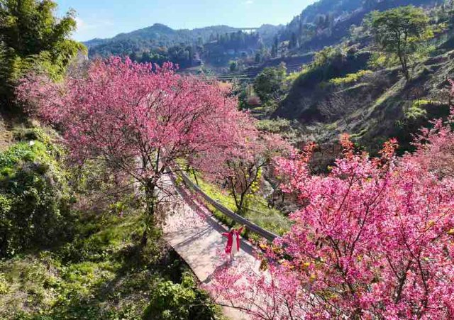 Romantic Vibes Overflow as Kunming's Winter Cherry Blossoms in Full Bloom