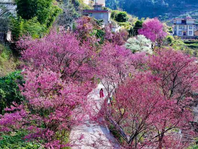 冬樱花,又名云南早樱,是云南省二级保护植物。它的盛开,预示着新的一年即将到来,也为昆明的冬天带来了春天的气息。在陡坡村,冬樱花的粉嫩与村落的白族风情相得益彰,为游客提供了一个既能欣赏自然美景,又能体验民族文化的独特去处。