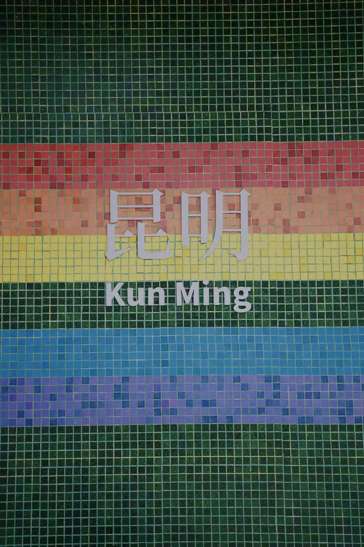 在昆明华山南路上有一家恭喜咖啡店,小店侧面有一面香港地铁站马赛克风的“昆明”墙,无论是单拍还是人像都非常出片。