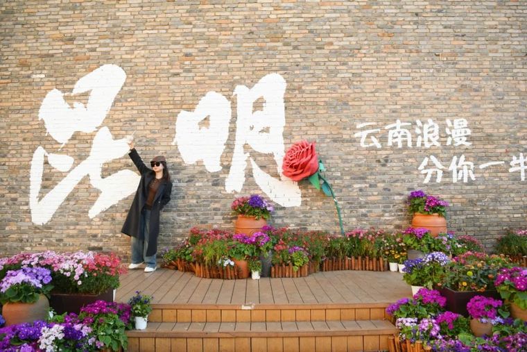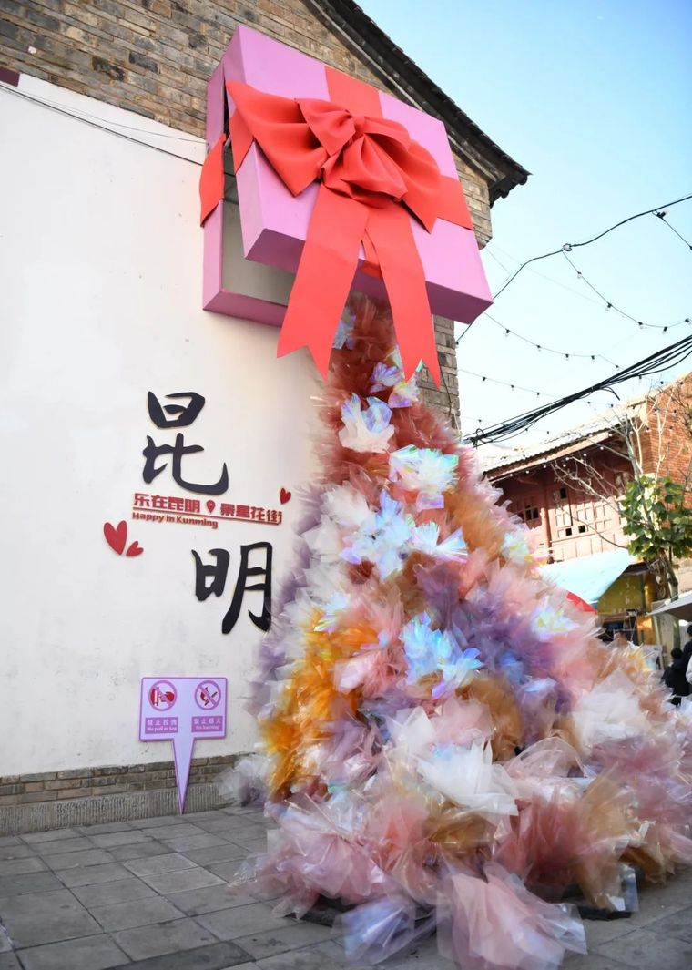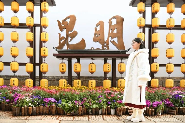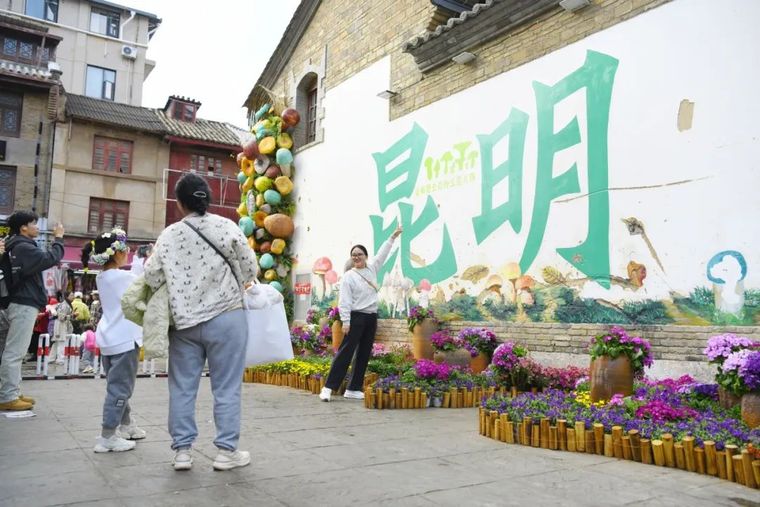 如今,昆明老街的一些商户在外墙装饰中使用了“昆明”“春城”字样,融入了昆明特色的野生菌、鲜花等元素,成为很多市民游客选择的热门打卡地。