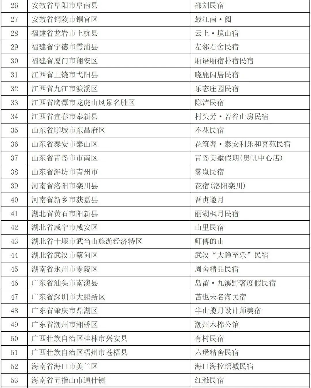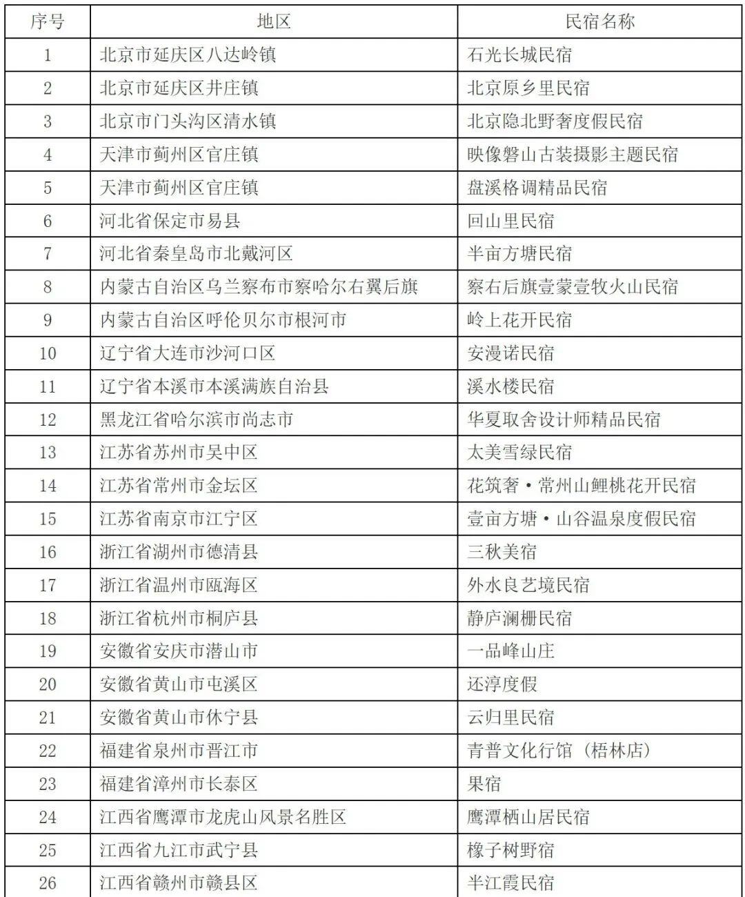 近日,文化和旅游部发布《关于发布2024年全国甲级、乙级旅游民宿的公告》,共59家旅游民宿符合全国甲级旅游民宿标准,80家旅游民宿符合全国乙级旅游民宿标准。