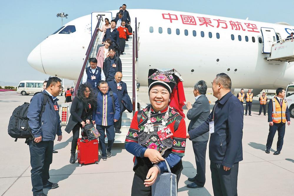 3月12日,赴京出席十四届全国人大三次会议的在滇全国人大代表,在完成大会各项议程后乘机返回昆明,开启履职新征程。
