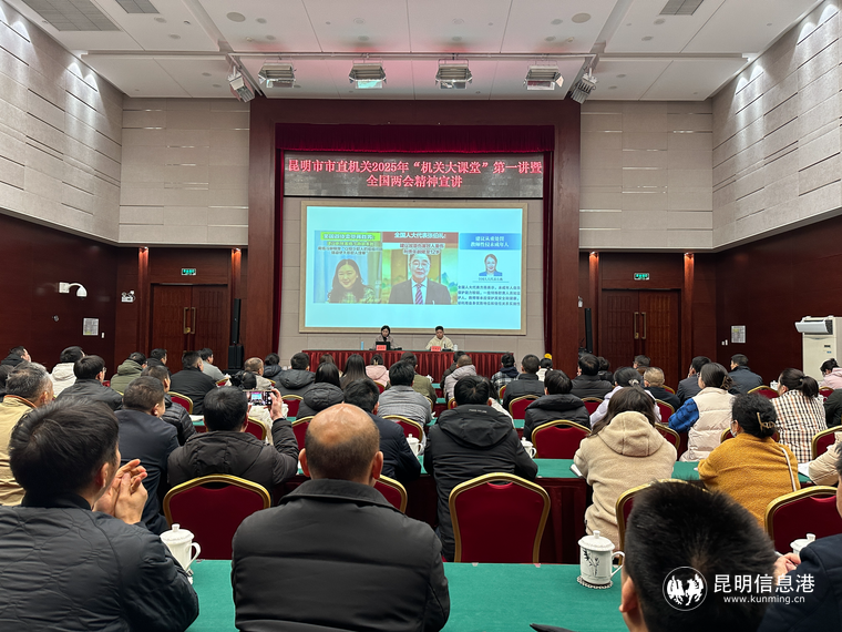 昆明信息港讯 记者孙红亮 3月18日下午,市直机关2025年“机关大课堂”第一讲暨全国两会精神宣讲在市级行政中心昆明会堂举行。本次讲座特邀中共昆明市委党校经济学教研部副主任、副教授,昆明市春城先锋讲师团、春城百姓宣讲团成员夏安玲作专题辅导报告。市直机关各直属机关党委、党总支、党支部及党务干部、工委全体干部职工共150余人参加学习。