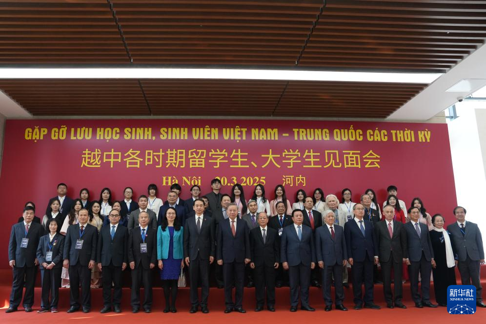 新华社河内3月21日电(记者邹学冕 胡佳丽)为庆祝中越建交75周年暨人文交流年,中国和越南各时期留学生、大学生见面会20日在越南首都河内越中友谊宫举行。越共中央总书记苏林、多名越共中央政治局委员和书记处书记,中国驻越南大使何炜,以及两国各界友好人士等逾800人出席。