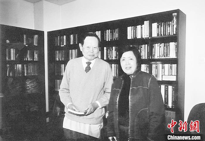 图为张曼菱采访杨振宁时与其合影。受访者 供图