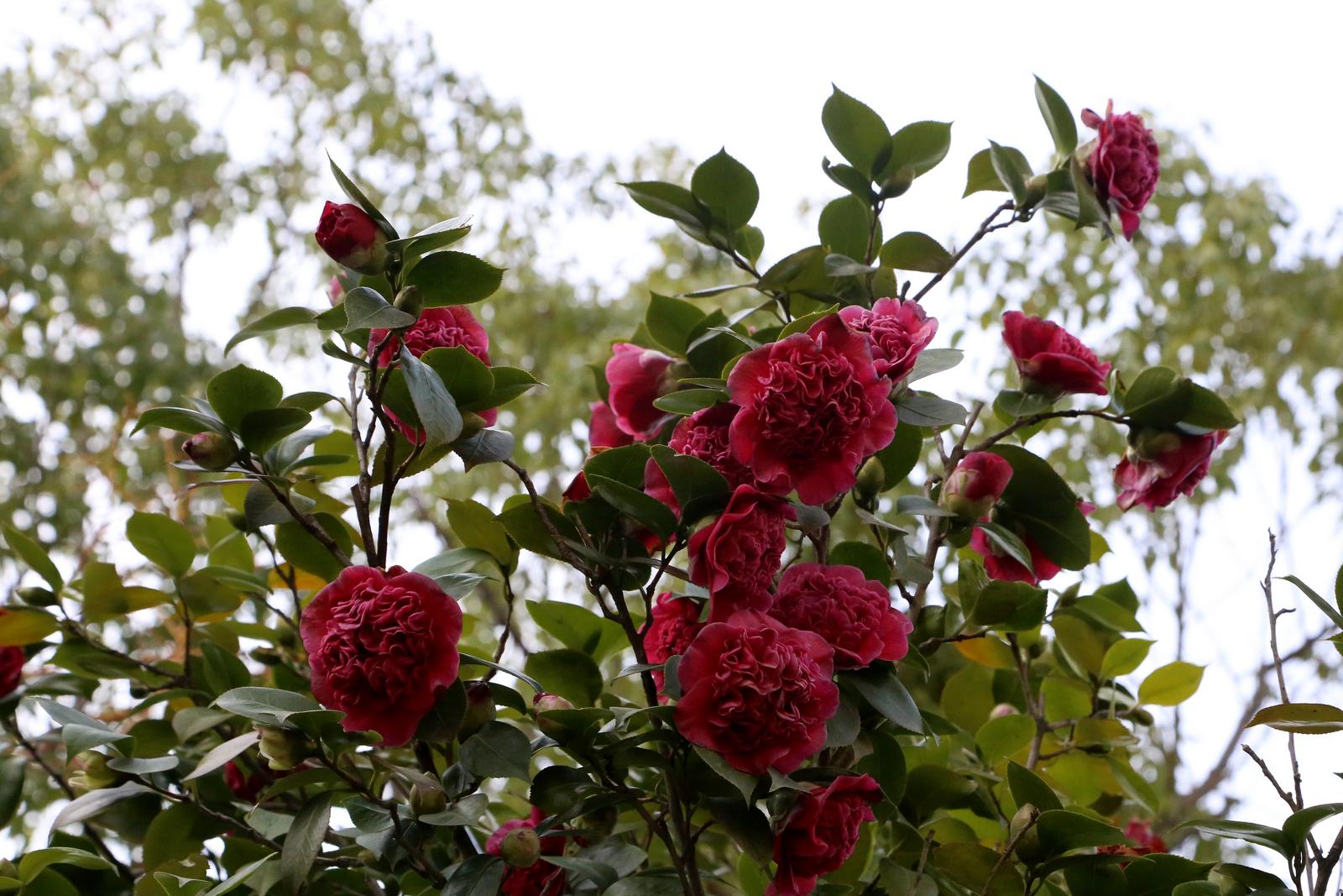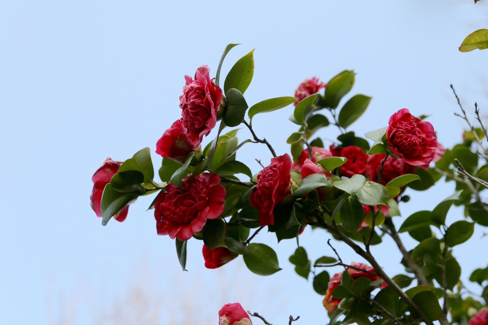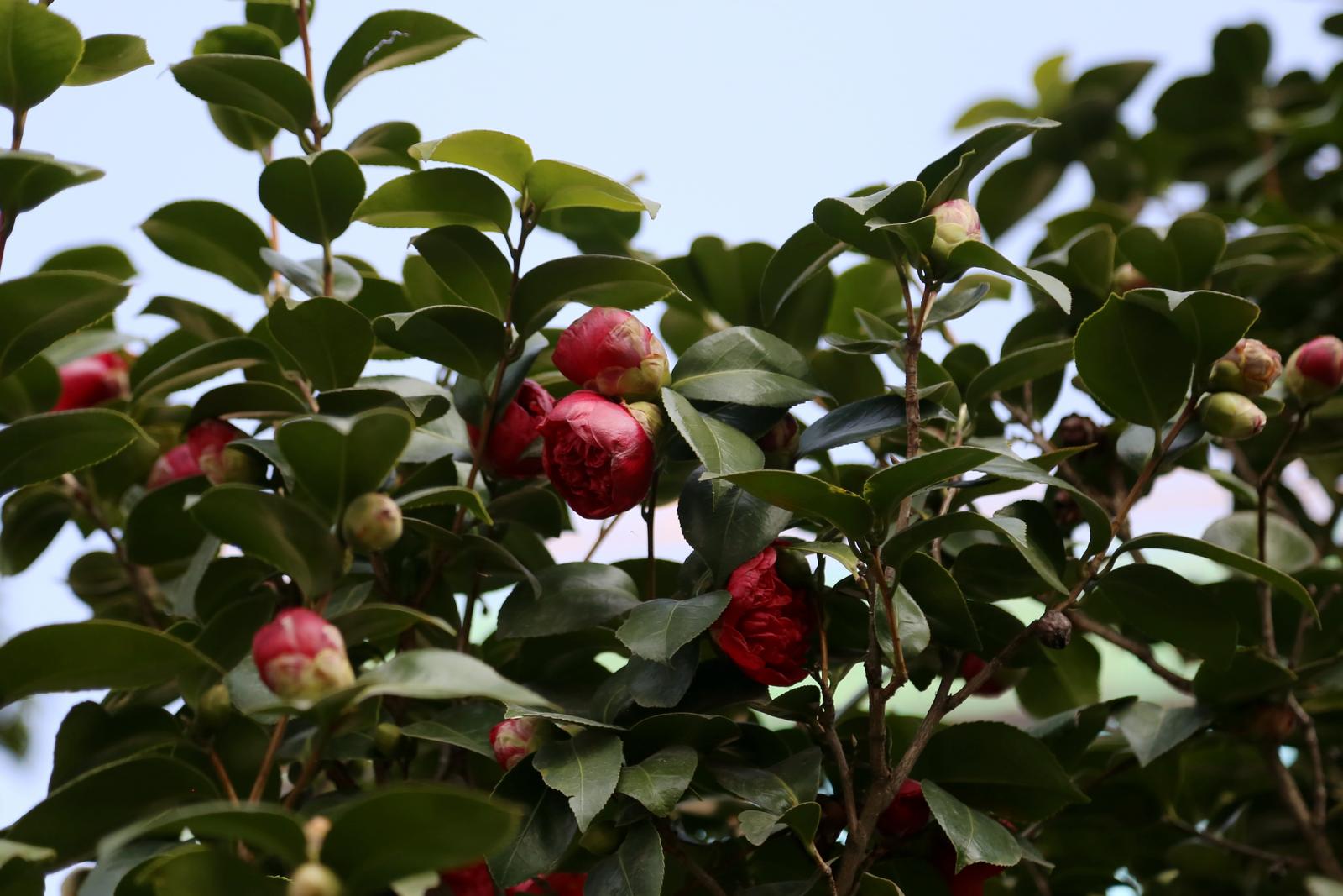 漫步在公园,微风拂过,山茶花随风摇曳,散发出阵阵清香,令人心旷神怡。盛开的花瓣层层叠叠,硕大的花朵缀满枝头,重重叠叠的花瓣如同红绸精心雕琢,细腻而富有质感。