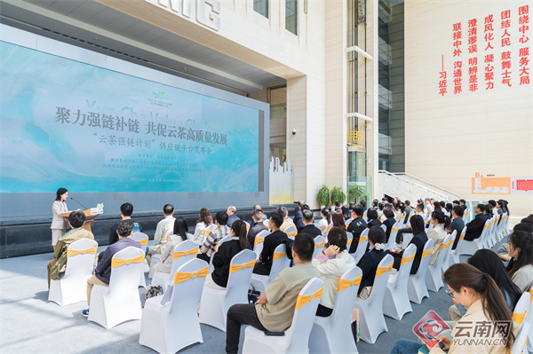 4月7日,由云南省商务厅指导,云南广电传媒集团联合云南农业大学茶学院及多个产茶县(区)政府共同发起的“云茶强链计划”供应链平台发布会在云南广播电视台举行。本次发布会以“聚力强链补链 共促云茶高质量发展”为主题,发布“云茶强链计划”供应链平台,旨在通过数字化赋能、茶文化产业链整合,推动云茶产业高质量发展。