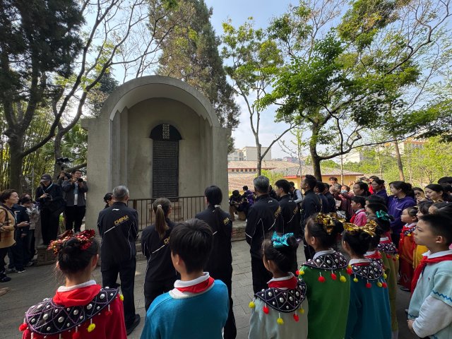 在讲解员带领下,奥运冠军参观了西南联大原教室、“一二·一”运动四烈士墓、革命烈士纪念碑、国立昆明师范学院纪念标柱、西南联大纪念碑等历史遗存,并深入了解西南联大师生教书救国、读书报国的光辉历史。在西南联大原教室里,云南师范大学师生为奥运冠军演唱了《西南联大校歌》。