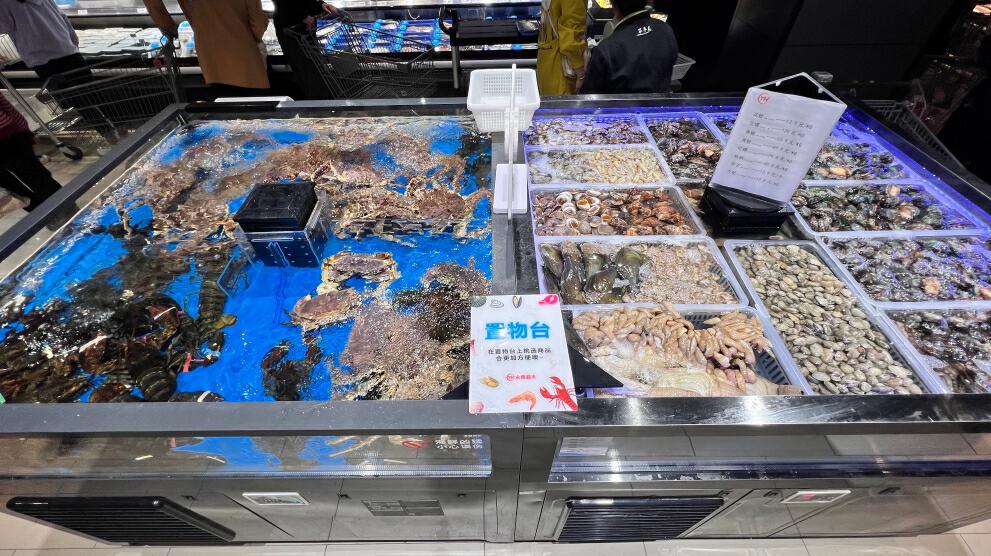 在海鲜区,师傅们熟练进行活鱼剖杀、切段清洗。东西买好了,不知道怎么烹饪好吃?超市直接附上免费菜谱。肉禽柜台也可以根据顾客需求提供切丝、切片、绞肉、剥皮、剔骨等服务。