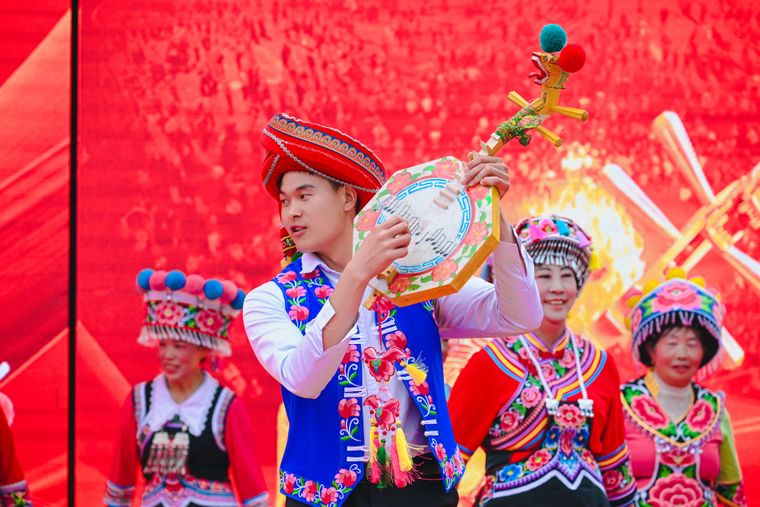 大舞台上,入围全国“群星奖”决赛的《弹起弦子跳脚来》、姚安的《小邑拉花》、玉溪市峨山县的《花彝鼓》、禄丰市的《芦笙舞》、大理巍山县的《巍山打歌》也轮番登场,在四月的和畅春风里,在左脚舞之乡共乐共舞。