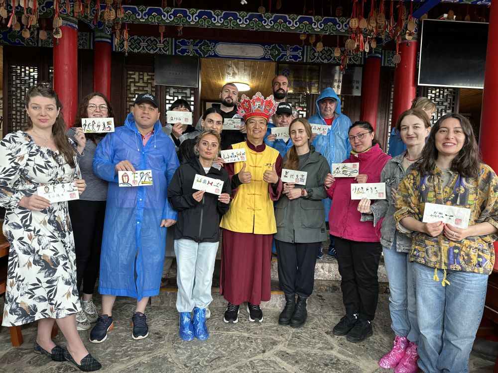 和华强向国际友人传播东巴文化。(供图)