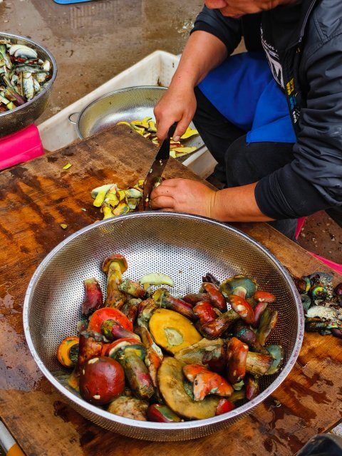 牛肝菌方面,黄牛肝菌130元/公斤,黑牛肝菌140元/公斤;见手青因新鲜度、品相分等级定价,越新鲜、品相越好则价格越高,小个头优质见手青270元/公斤,大个头见手青220元/公斤;青头菌260元/公斤。