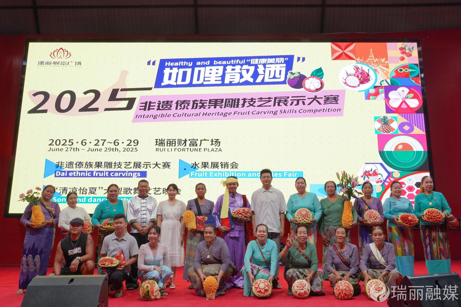 6月28日晚,一场集竞技性、观赏性与文化传承于一体的盛会——“如哩散洒”非遗傣族果雕技艺展示大赛在瑞丽财富广场举行,为市民游客带来了一场视觉盛宴。