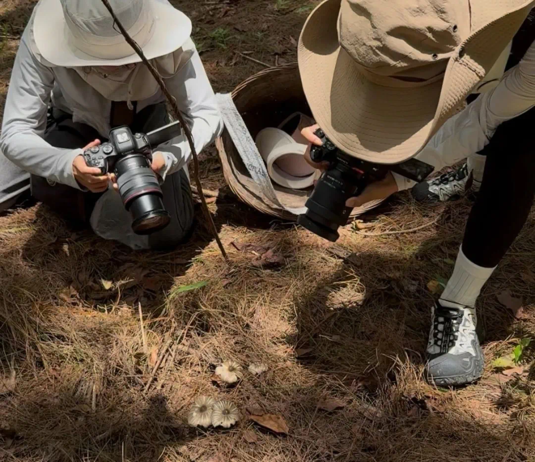 鸡枞被誉为“菌中之王”,与白蚁有着密切的共生关系,生长环境较为苛刻,十分难得。眼前的鸡枞,菌盖呈圆锥形,表面光滑,颜色从浅土黄色逐渐过渡到灰白色,菌柄粗壮,洁白如玉。它们有的独自挺立,有的三两成群,像是一群身着白衣的仙子,亭亭玉立在这片山林之中。