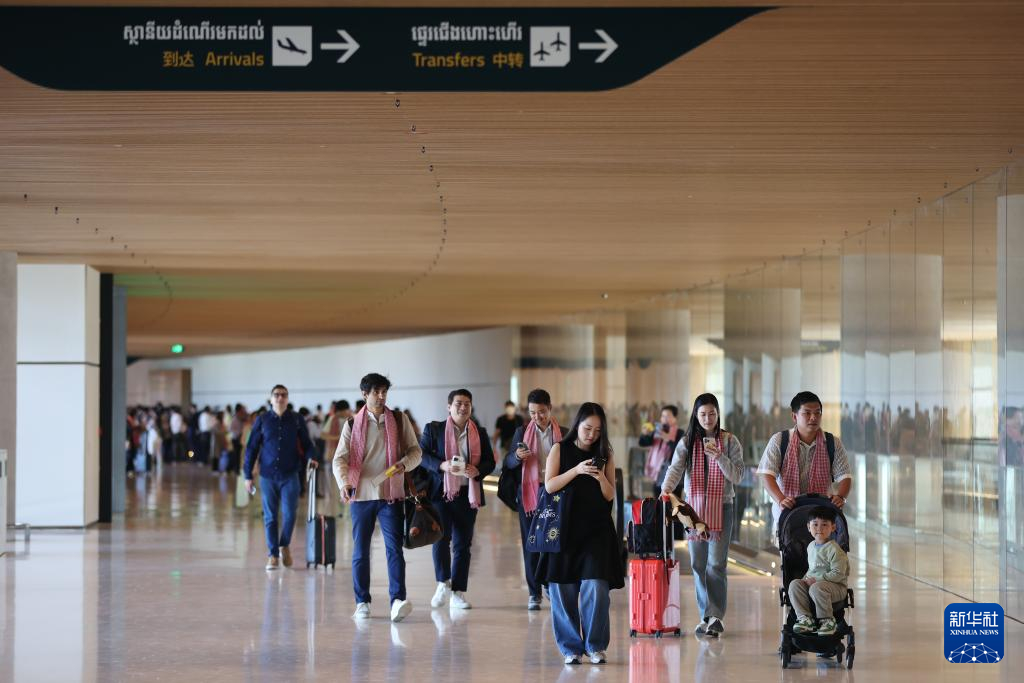 9月9日,在柬埔寨干丹省,首批乘客抵达德崇国际机场。新华社发(索万纳拉摄)