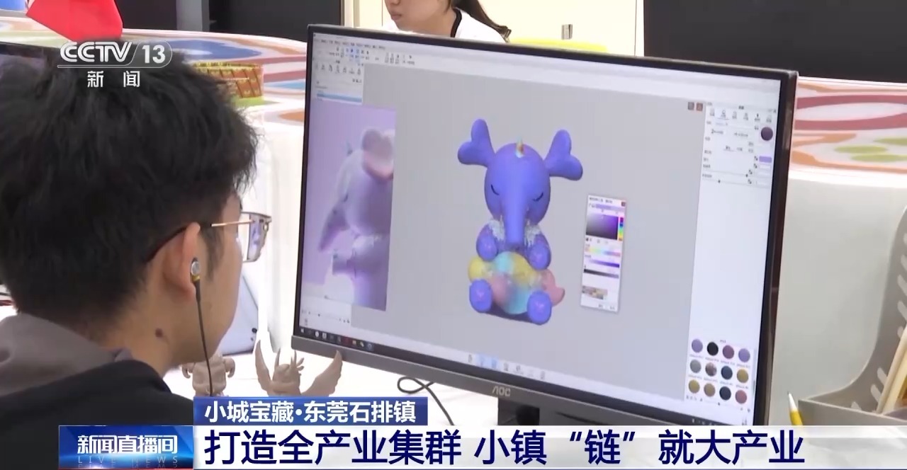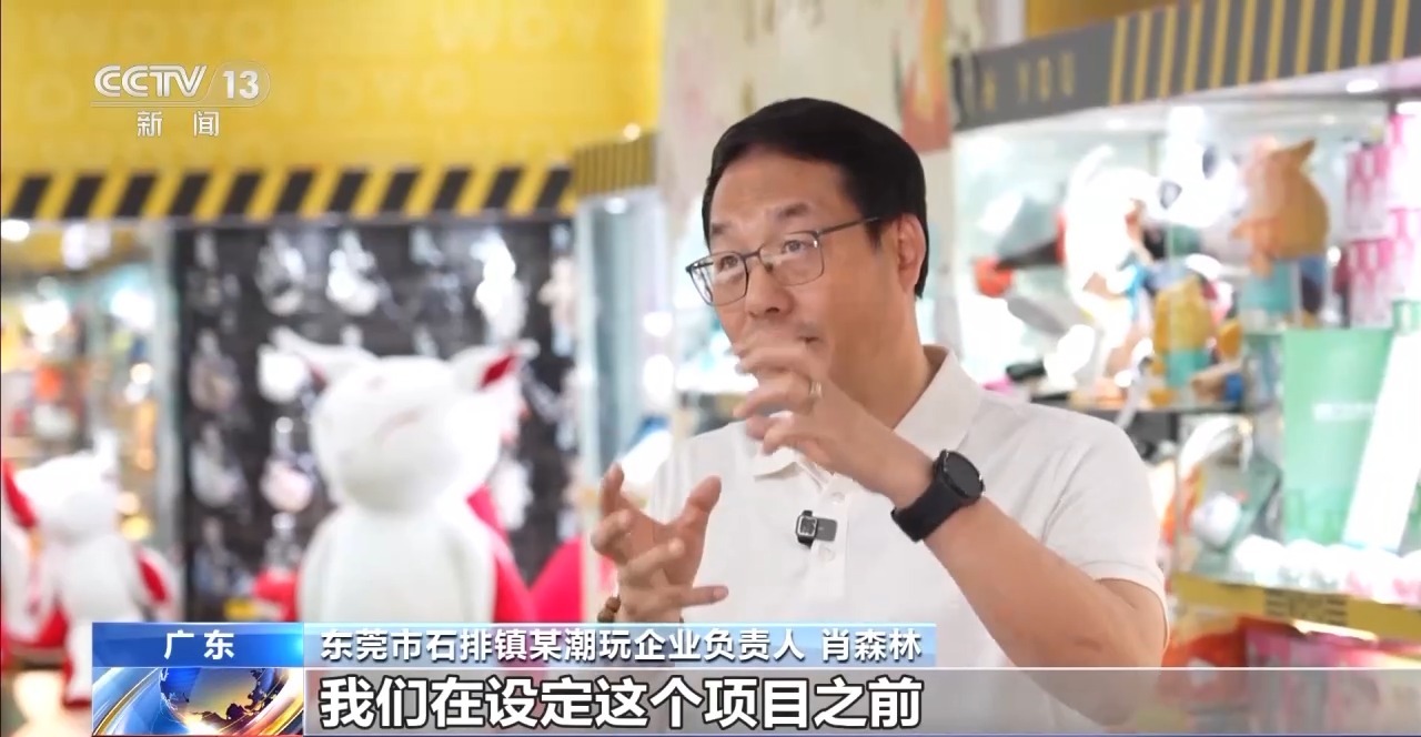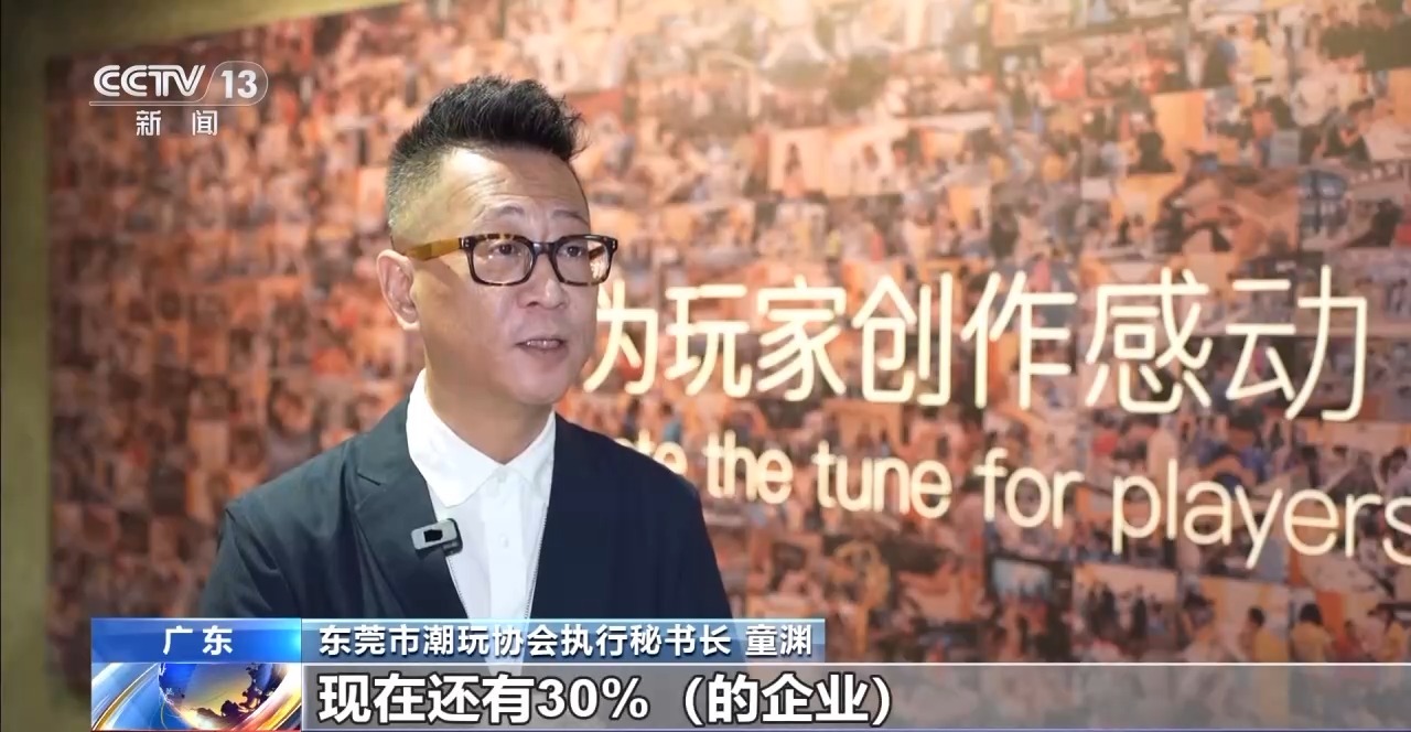 东莞市潮玩协会执行秘书长 童渊:近几年,东莞上(规模)的企业的话60%以上已经投入了数字化跟智能化这方面的设备。现在还有30%(的企业)将往3.0(版本)去走,更多的机器人设备要进来。另外用更多的AI去做IP的运营。