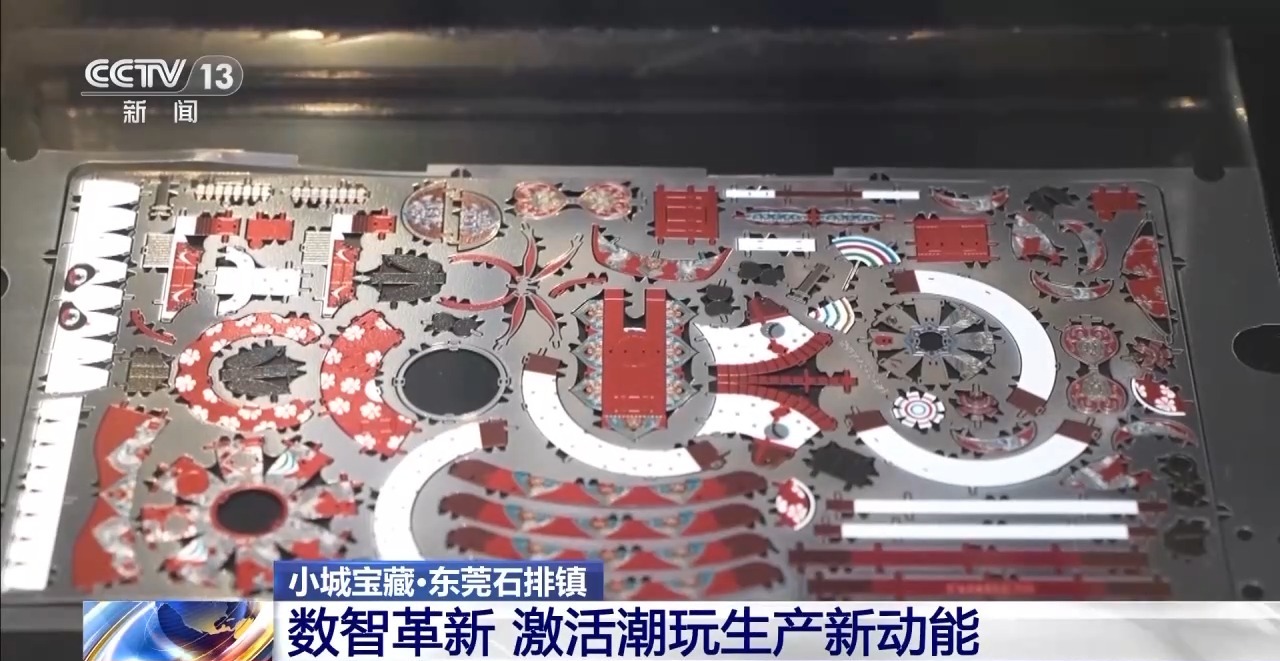 如今,潮玩制造正在向高精度迈进。这家以金属薄片为核心材料生产拼装玩具的企业,利用蚀刻工艺,在厚度仅有0.3毫米的黄铜薄片上精准切割出比米粒还小的卡扣。这些极其精密的配件,经过拼装,就能变成精美的文创产品。