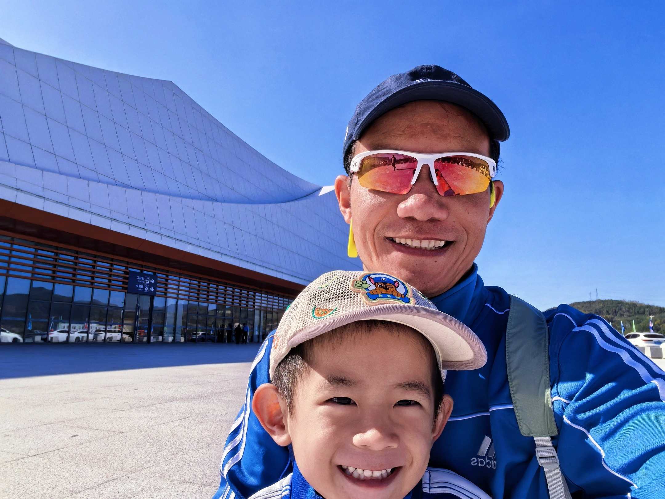 图为9月27日父子俩在白山东站的开心合影留念。