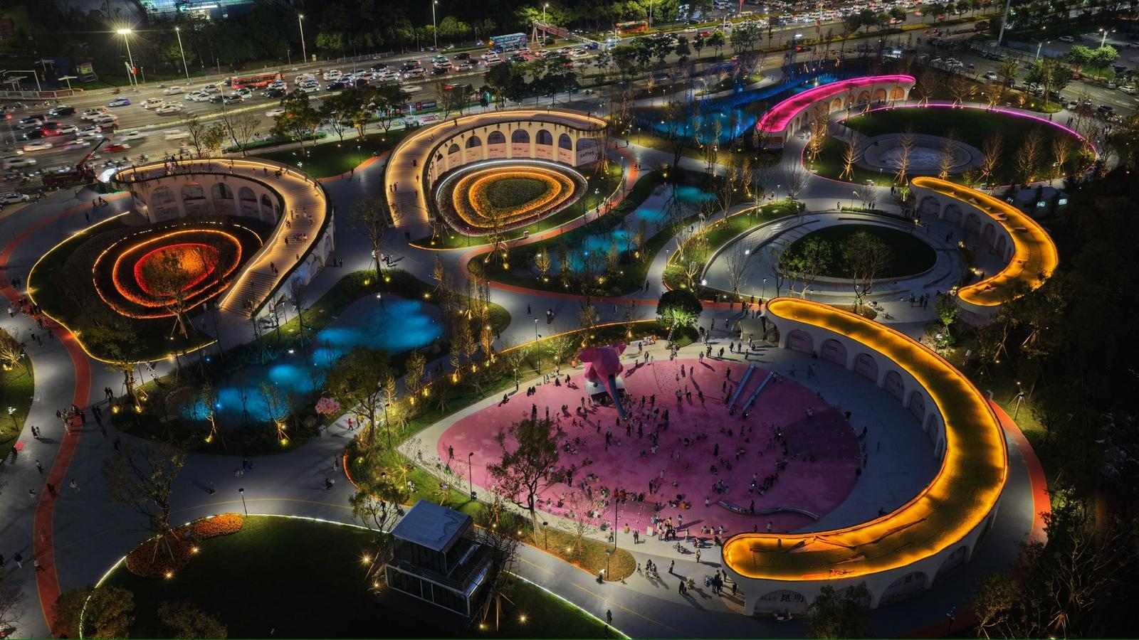 10月12日,昆明巫家坝首个新建城市公园正式对外开放,飞速成为了附近市民夜间休闲的“新宠”。