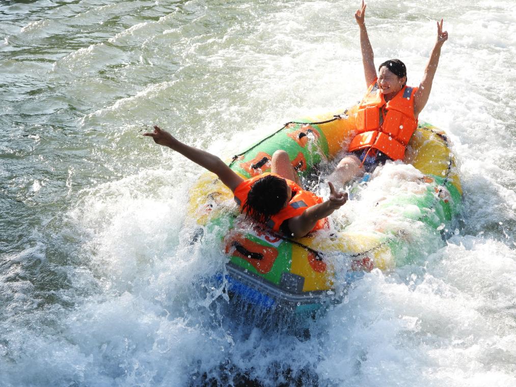 在四川省达州市渠县賨人谷景区,游客在漂流。新华社发(邓良奎摄)