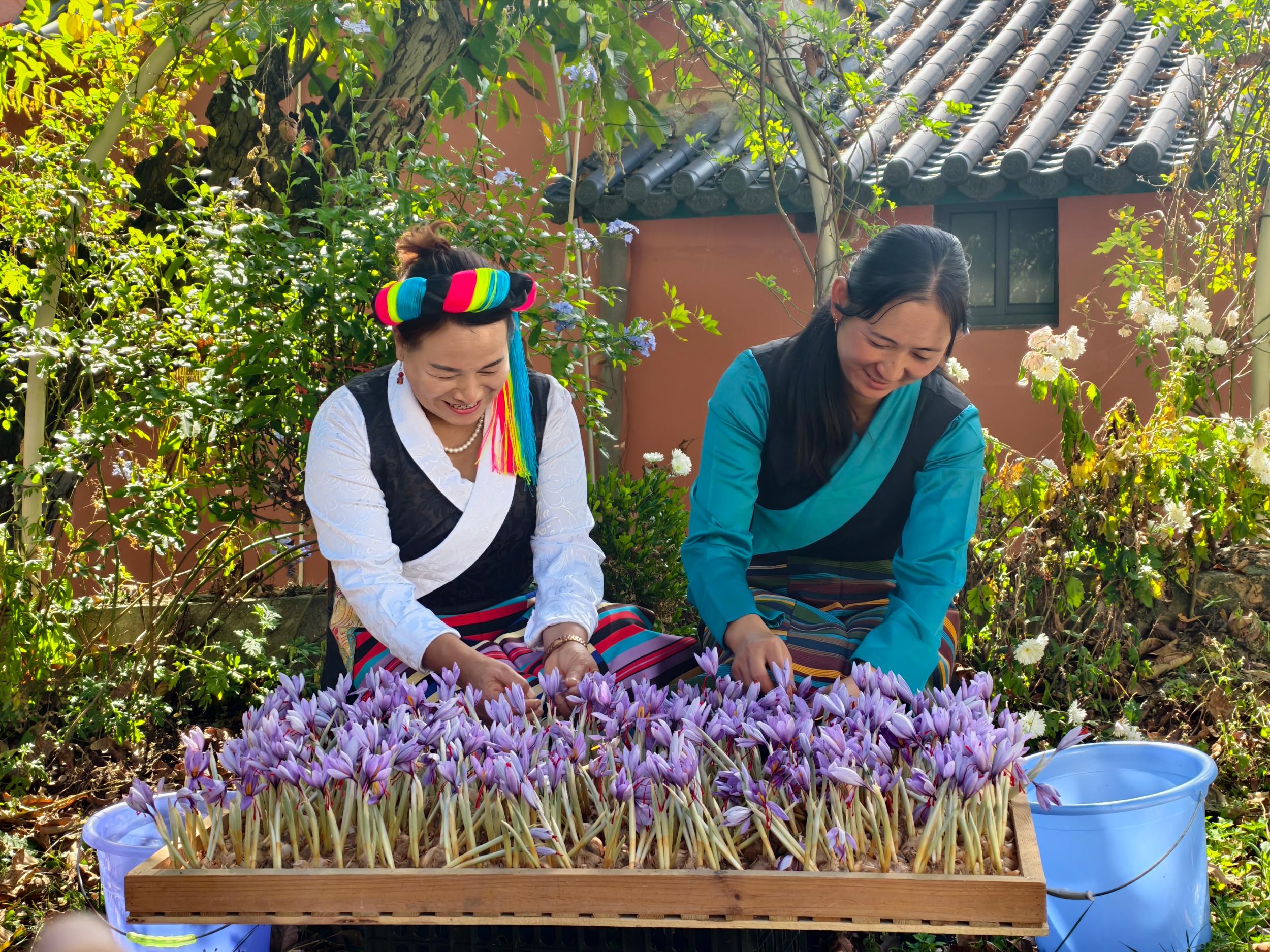 近日,迪庆藏族自治州维西傈僳族自治县塔城镇其宗村的藏红花进入了采花季。