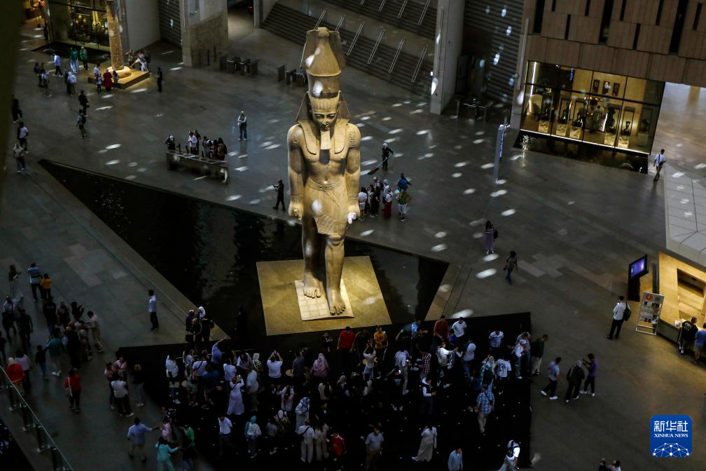 当日,大埃及博物馆正式向公众开放。大埃及博物馆是世界上最大的专门展示单一文明(埃及文明)的博物馆,历时20多年才建成开馆。该馆占地约50万平方米,馆藏文物超过10万件,首次完整集中展示古埃及法老图坦卡蒙的5992件随葬品,此外还展出修复后的胡夫太阳船、古埃及法老拉美西斯二世巨像等文物。(新华社发 艾哈迈德·戈马摄)