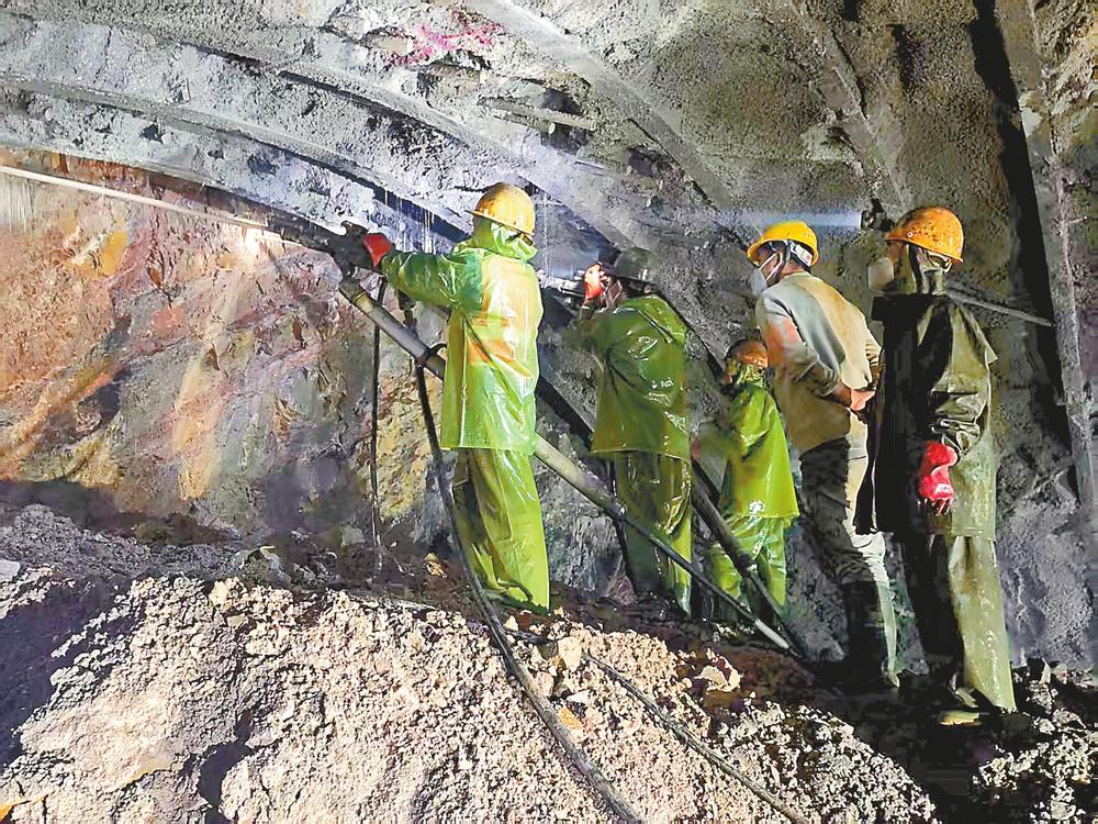 工人在梁王山隧道加紧施工。通讯员孟凡鑫/摄