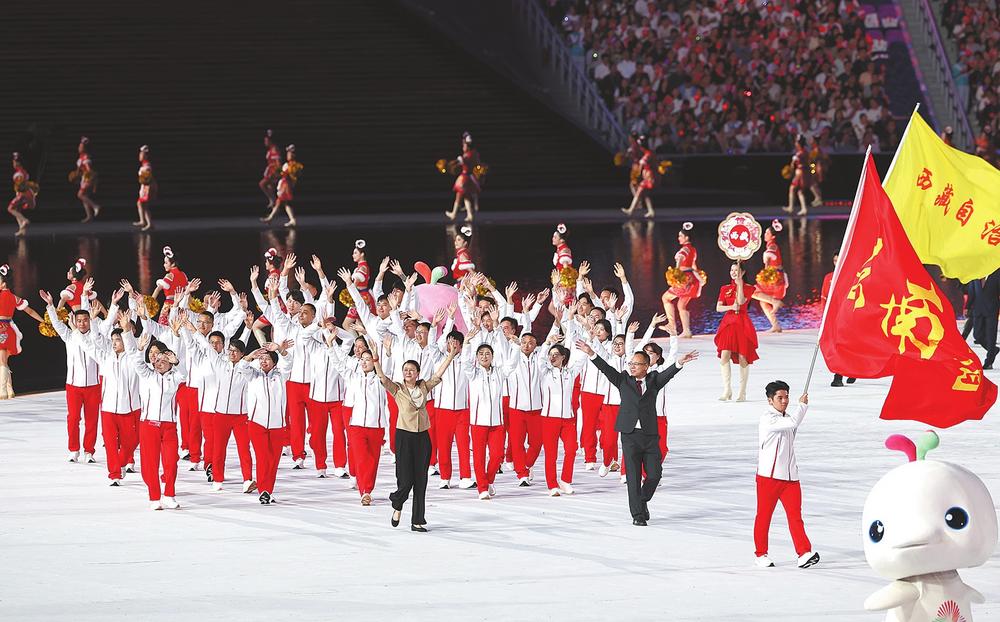 云南省体育代表团在入场仪式上走进会场 本报记者 周灿 摄