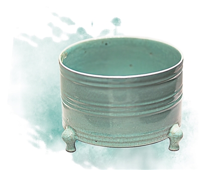 故宫博物院藏北宋汝窑淡天青釉弦纹三足樽式炉。