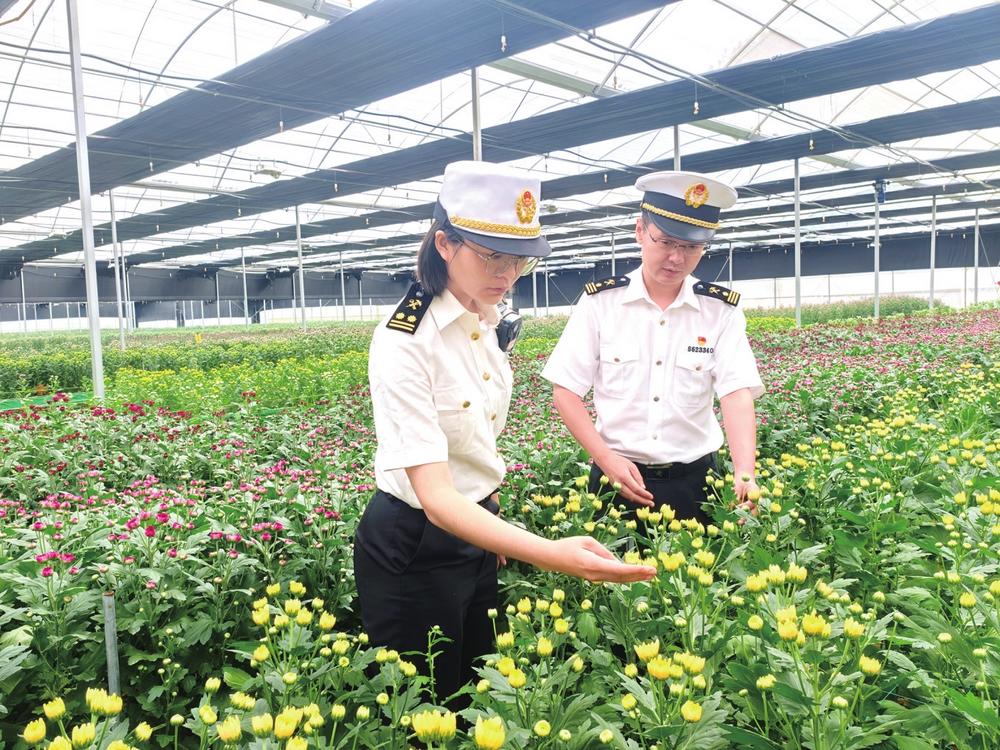 海关关员在云南文山鲜切花种植基地开展日常监管。通讯员合丹妮/摄