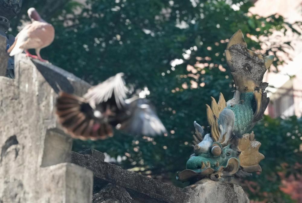 11月12日,在香港的文武庙屋顶上,立着鳌鱼的雕塑。新华社记者 吴鲁 摄全运会带给我们的远不止一场场精彩的比赛