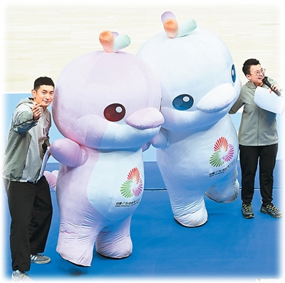 第十五届全国运动会吉祥物与观众互动。新华社记者 胡虎虎摄