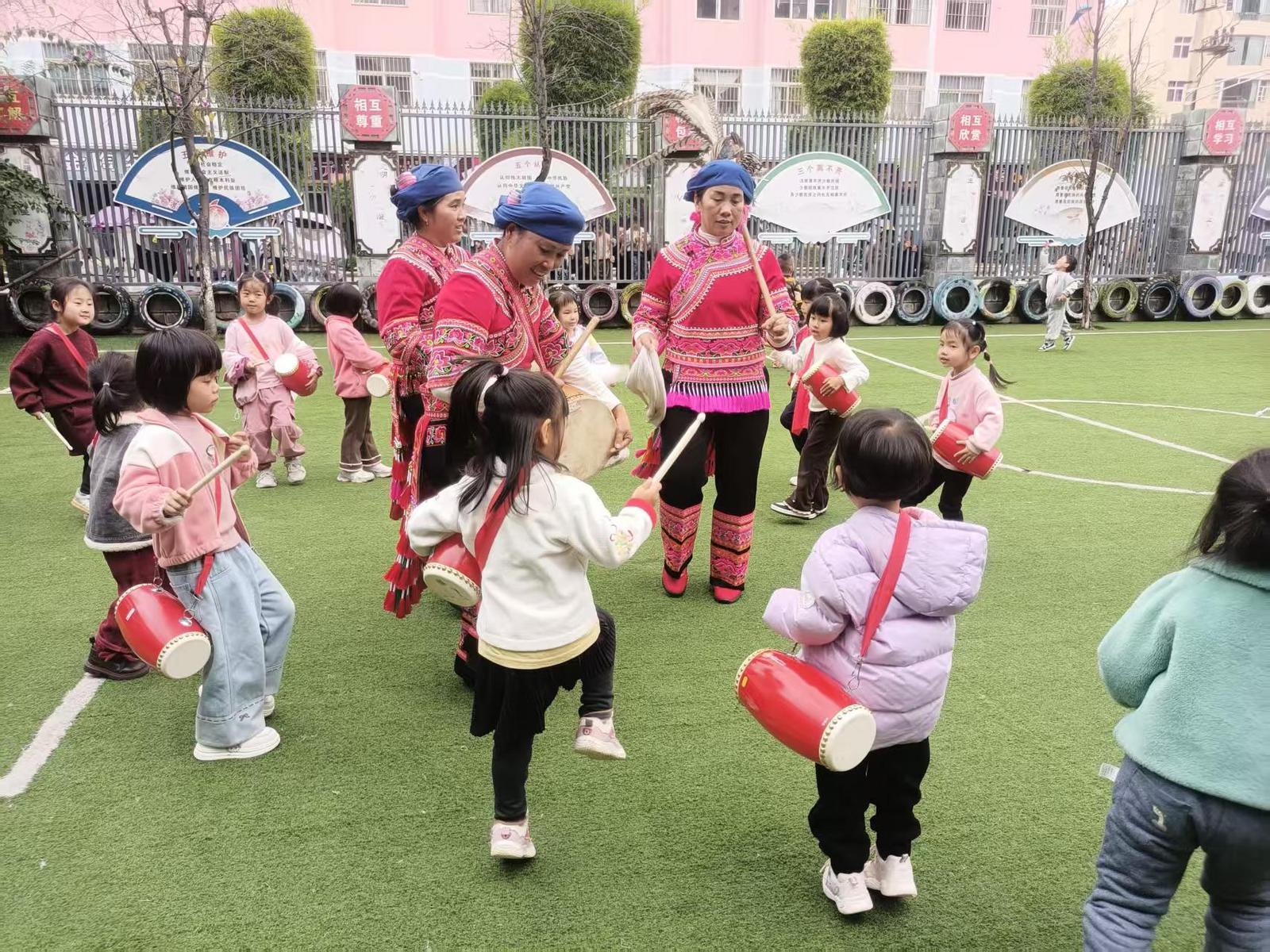 近日,云南省玉溪市新平彝族傣族自治县平甸乡邀请非遗花鼓舞传承人走进新平县第一幼儿园,开展“非遗进校园”活动,弘扬中华优秀传统文化,推动非物质文化遗产的活态传承,在孩子们心中播撒文化传承的种子。