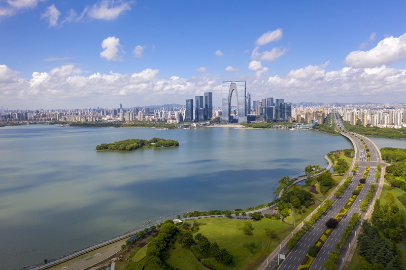 坐落于金鸡湖畔的苏州工业园区(苏州工业园区融媒体中心供图)