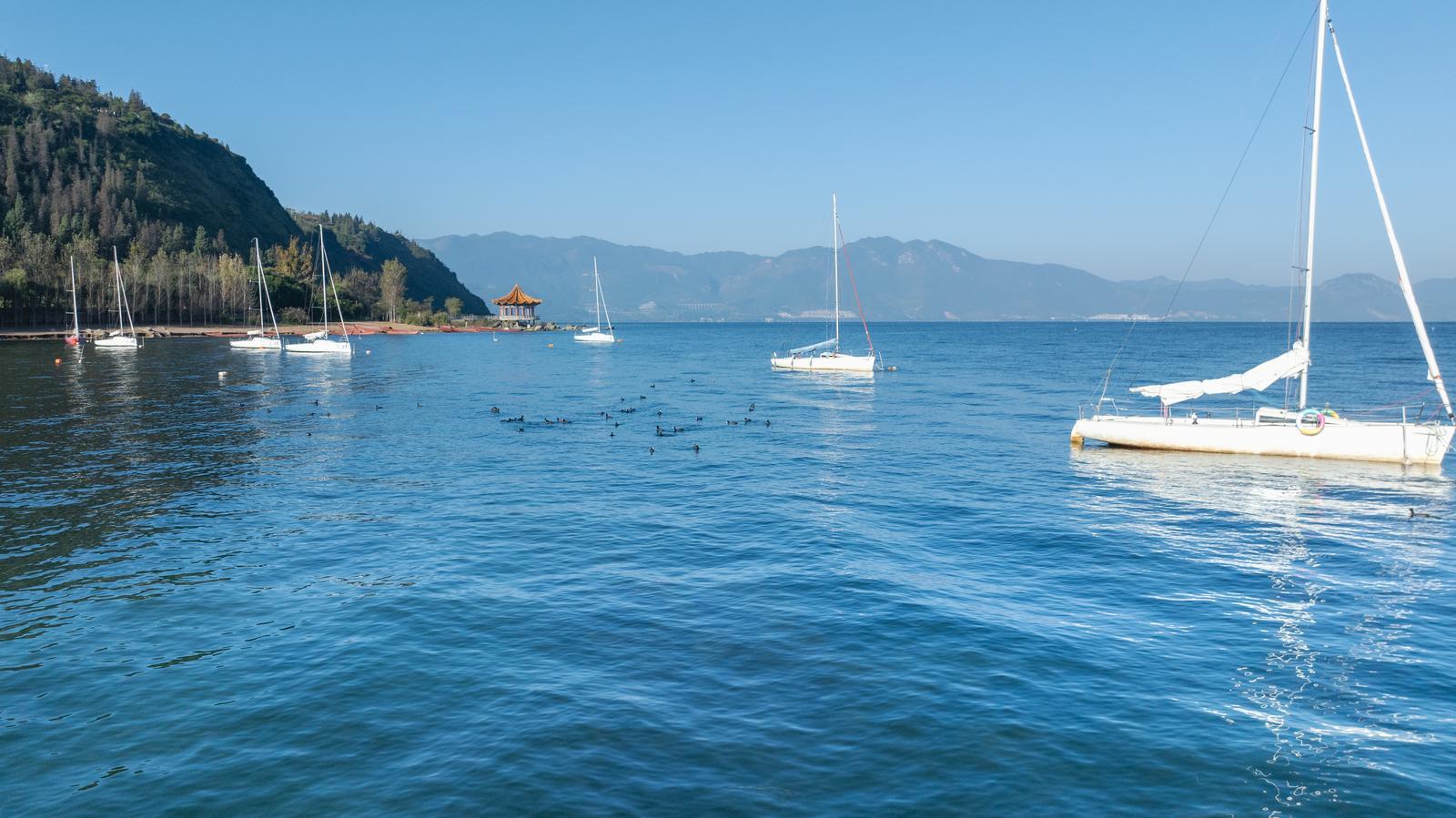 在北方已是万物萧瑟的冬季时,抚仙湖依然保留着诗意的温度与色彩。这里的天是纯净的蓝,水是迷人的深蓝,每一天,从晨光初现到暮色四合,都像一幅缓缓铺展的画卷,静谧而生动。