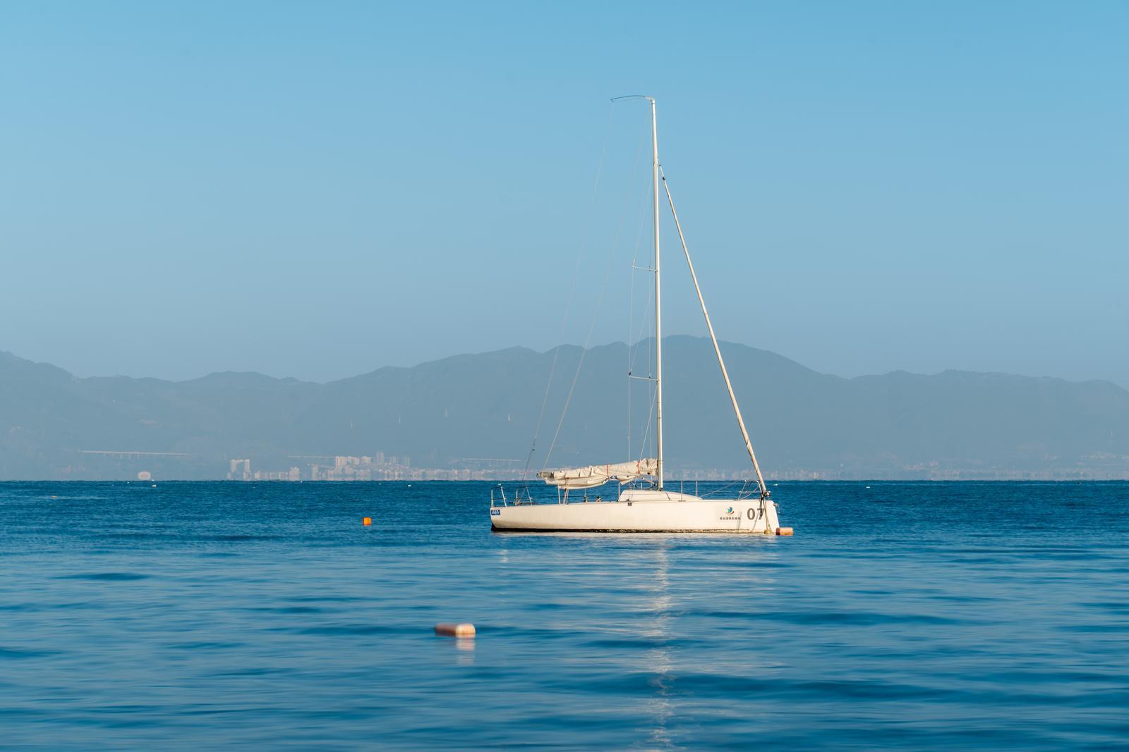 清晨,当初升的阳光温柔地跃出山巅,抚仙湖便从沉睡中醒来。湖面的深蓝与天空的浅蓝交织成一片水天一色的辽阔景象。帆船静静停泊在岸边,时间在这里仿佛放慢了脚步。