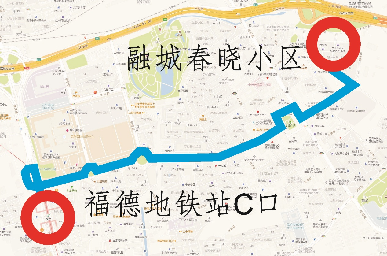 途经站点:融城春晓小区(起始站)、福德地铁站C口(终到站)。