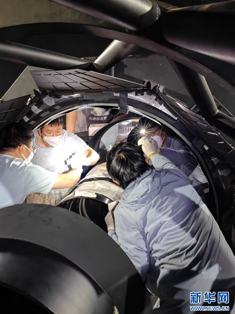 2025年7月22日,相关技术人员正在清洗梦飞巡天望远镜主镜。(受访者供图)