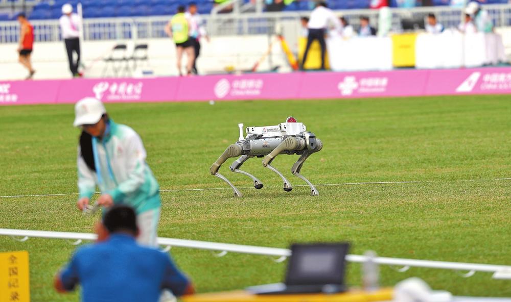 铁饼项目赛场上的机器狗。 本报记者 黄兴能 摄