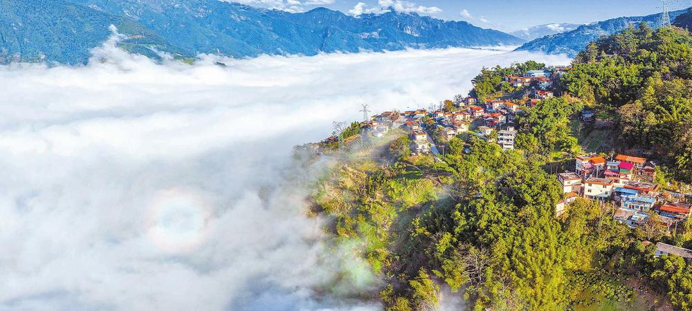 乳白晨雾漫过谷底,将山腰间红顶错落的村落托成“云上秘境”,福贡县正铺展一幅色彩交织的山水长卷。