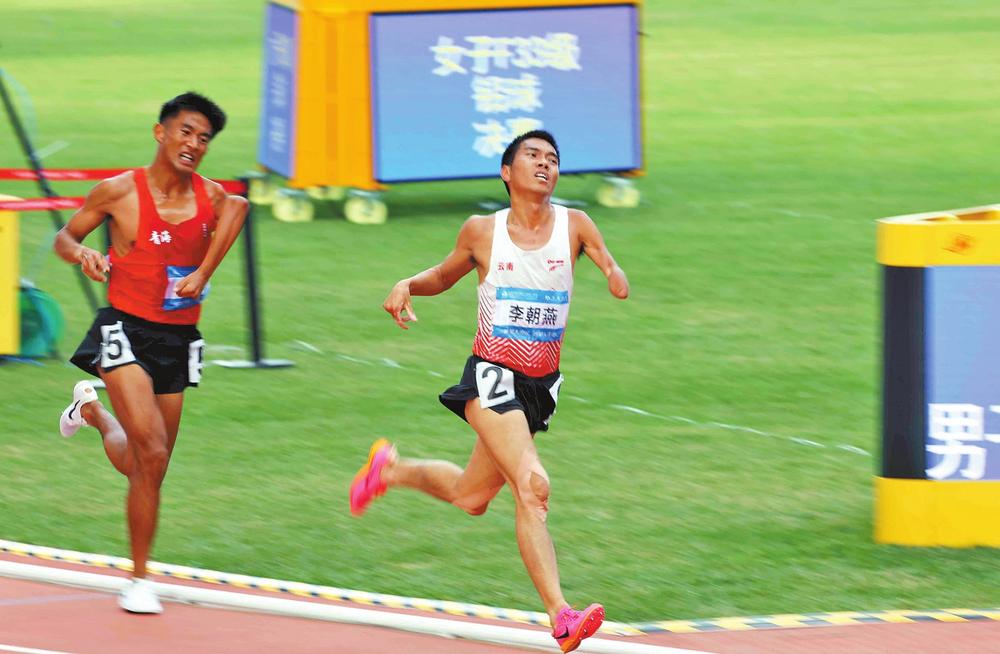 在李朝燕最先参加的男子1500米比赛中,他的发挥并不理想,仅获得第四名。但这名老将并没有因此消沉,而是继续为5000米和10000米项目做着准备。在5000米比赛中,他第一个冲过终点线,接下来又是10000米轻松夺金,成绩足足领先第二名9秒多。“这两枚金牌是我献给家乡的谢幕礼,今后我会在工作岗位上尽责尽力,带好田径队的队员们,把我的经验传授给他们,让更多年轻人能够通过跑步强健身体、磨炼意志。”李朝燕说。(云南日报 记者娄莹/文 黄兴能/图)