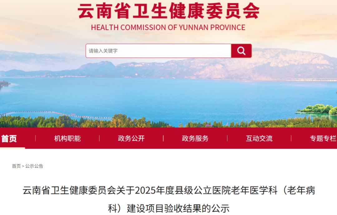 12月18日,云南省卫生健康委员会网站发布关于2025年度县级公立医院老年医学科(老年病科)建设项目验收结果的公示显示,昆明市共有7家医院拟达标,1家医院为拟续建医院。