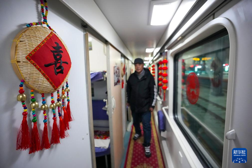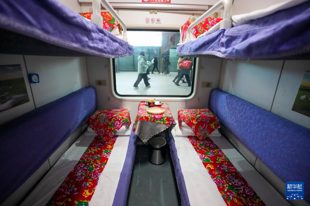12月22日拍摄的K7041次列车的东北风情主题卧铺车厢。(新华社记者 王松 摄)