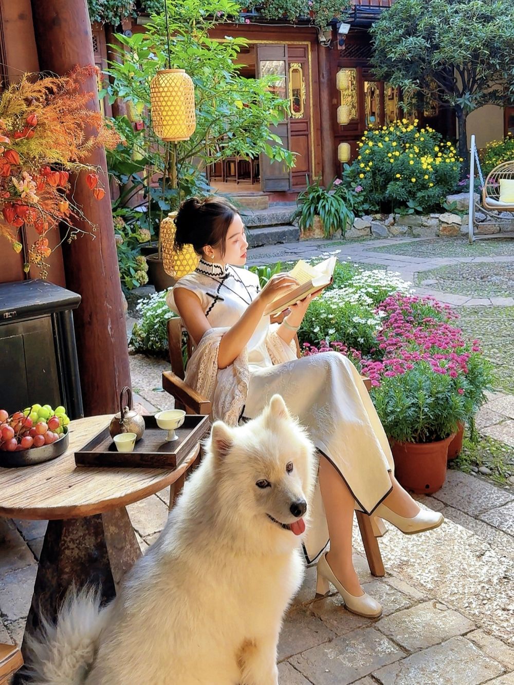 在丽江古城忠义巷的三眼井旁,一棵百年大树枝繁叶茂,像一把巨伞般洒下光影,在它温柔的掩映下,“桂语岚”客栈若隐若现,静静散发着独特的魅力。客栈所在的院子,拥有一百多年历史,现在它的主人是丽江轩姑娘。轩姑娘在前院营造出四季繁花似锦的盛景,无论何时踏入,都仿佛置身于花的海洋;而后院则是一方宁静天地,鱼池里锦鲤悠然游弋,茶室中茶香沁人心脾,处处弥漫着浪漫与悠闲的气息。在这里,每一位游客都能寻得一方治愈心灵的净土。