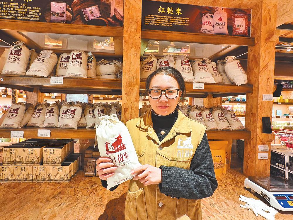 周星宇展示香印酒店普洱扶贫农产品。 通讯员边紫璇/摄