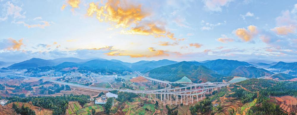牟元高速全长48.5公里,拥有29座桥梁、10座隧道,桥隧相连,桥隧比高达77.16%,工程施工复杂困难。通车后,这条路连接起的不仅是牟定、禄丰、元谋3县市的地理时空,更是区域发展的战略空间、绿色转型的创新实践与百姓向往的美好生活。