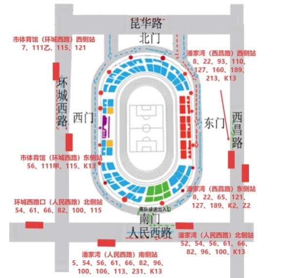 昆明市体育场位于主城一环内核心区域,周边人流、车流密集。赛事期间,市体育场及周边区域无停车资源,请观赛群众优先选择地铁、公交等公共交通方式出行。