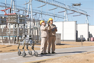 元旦前夕,在承担田湾核电站电能外送任务的徐圩变电站内,国网连云港供电公司500千伏变电运检中心工作人员通过自主规划巡检航线的无人机,联合运用机器狗、可视化监控等科技装备,开展专项巡检工作,全力保障严寒天气下设备安全可靠运行。