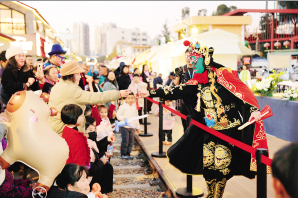 铁轨旁的云南风情长街宴带来云南少数民族歌舞迎宾与古朴隆重的敬酒礼仪,让大家瞬间沉浸于浓郁的民族文化氛围之中。宣威火腿的开封片制、酥香烤鸭的精巧片皮、热气蒸腾的羊汤锅现场烹煮……“云南特色上菜秀”环节,大家身着民族盛装呈现地道佳肴,为市民、游客送上饮食文化展演。
