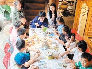 老师指导孩子们制作瓦猫。 瓦猫博物馆供图